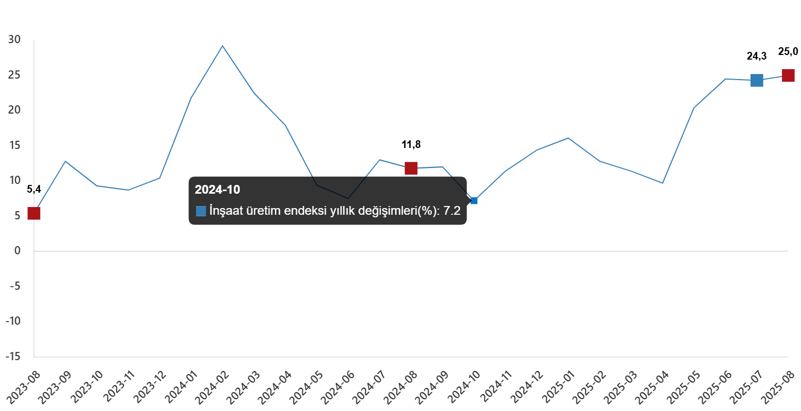 İnşaat Üretim Endeksi, Ağustos 2025